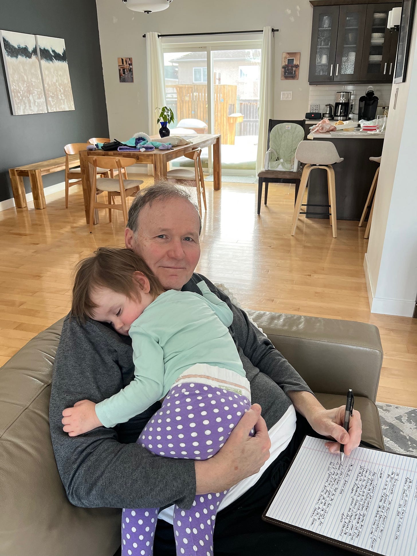 You’ve found a few minutes, free from distractions. The mind is fresh with ideas, ready to tackle that empty page when along comes a distraction in the form of a two-year old granddaughter. She’s oblivious to what you had in mind and wants nothing more than to feel your arms around her. She cuddles and promptly falls asleep, leaving you to ponder the mysteries of a child’s simple life. The pen is poised on the page as your heart melts, not wanting to disrupt her sense of wellbeing.